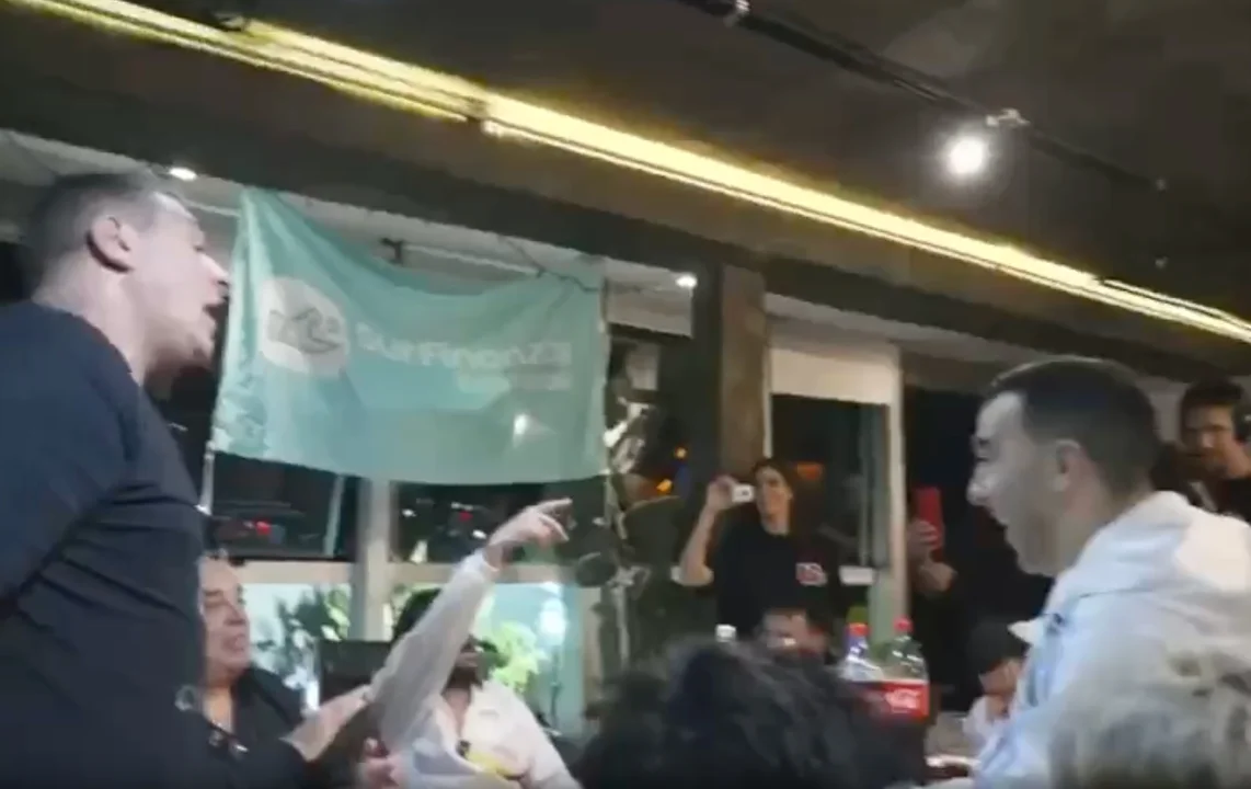 Tal como había trascendido, el Turco se molestó por un chiste subido de tono del influencer sobre su esposa: primero le tiró agua con un vaso y luego terminaron a las piñas.