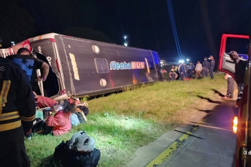 El siniestro vial ocurrió pasadas las 10 en el kilómetro 159 de la ruta nacional 13, cuando la unidad de la empresa Flecha Bus se despistó y volcó, quedando sobre el cantero central, en momentos en que se registraba una lluvia de cierta intensidad.