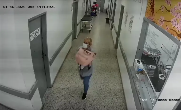 En las imágenes del propio hospital se observa a la mujer que ingresa a una habitación y luego escapa corriendo con el recién nacido en brazos y con barbijo puesto, con la idea de evitar ser reconocida.