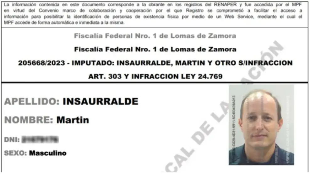 El pedido del fiscal Mola señala que «se designe a la PSA para que proceda a la búsqueda y extracción de todas las imágenes obtenidas en las cámaras de seguridad del Aeropuerto de Ezeiza que ilustren el arribo de Martín Insaurralde al aeropuerto hasta su embarque en el vuelo IB-6844 de la empresa Iberia con destino a España, el 15/09/2023».