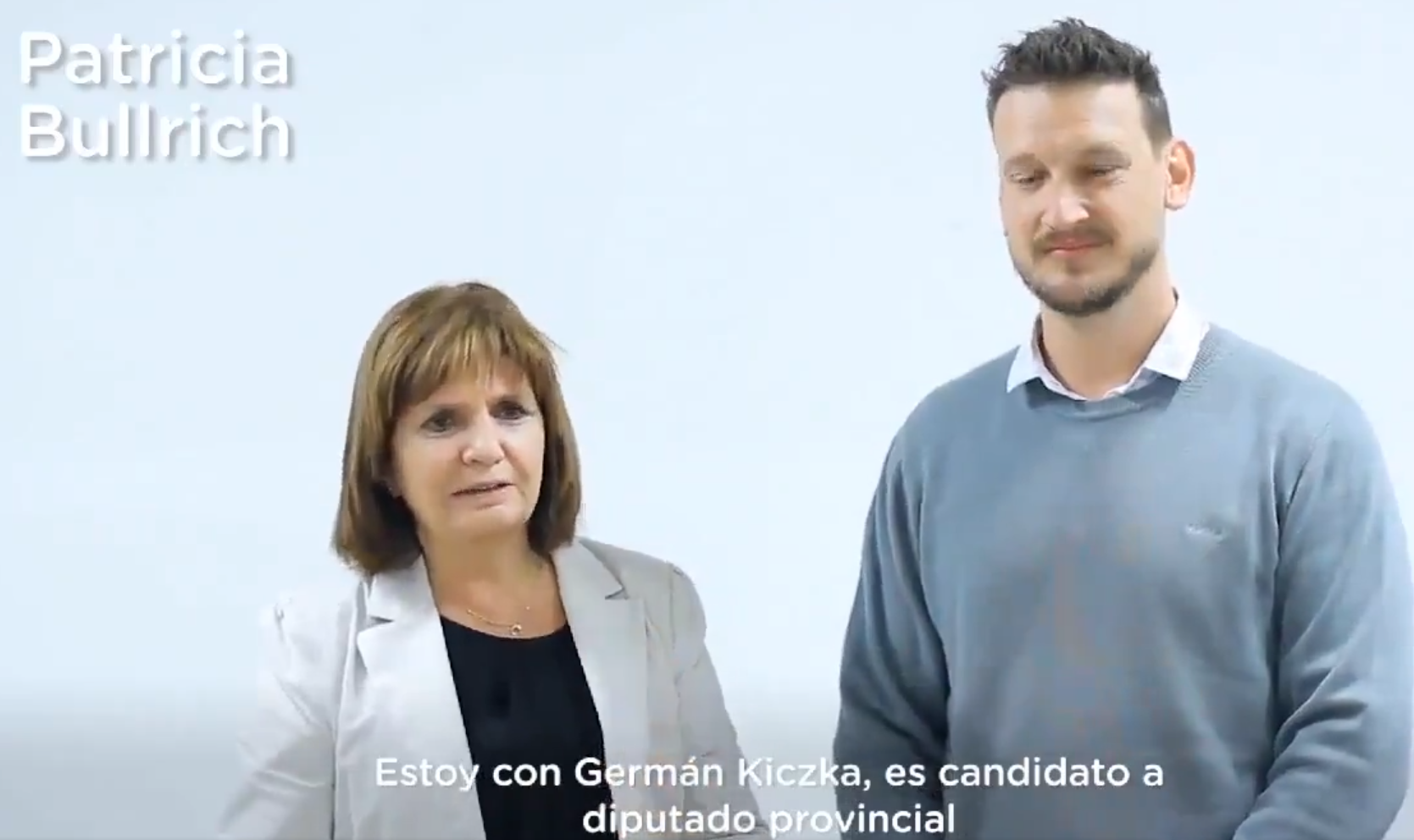 En la grabación (2023) se observa a la funcionaria brindarle su respaldo al ex legislador del partido Activar. «Estoy con Germán Kiczcka, es candidato a diputado provincial», afirma al principio la ex aspirante a la presidencia por Juntos por el Cambio.