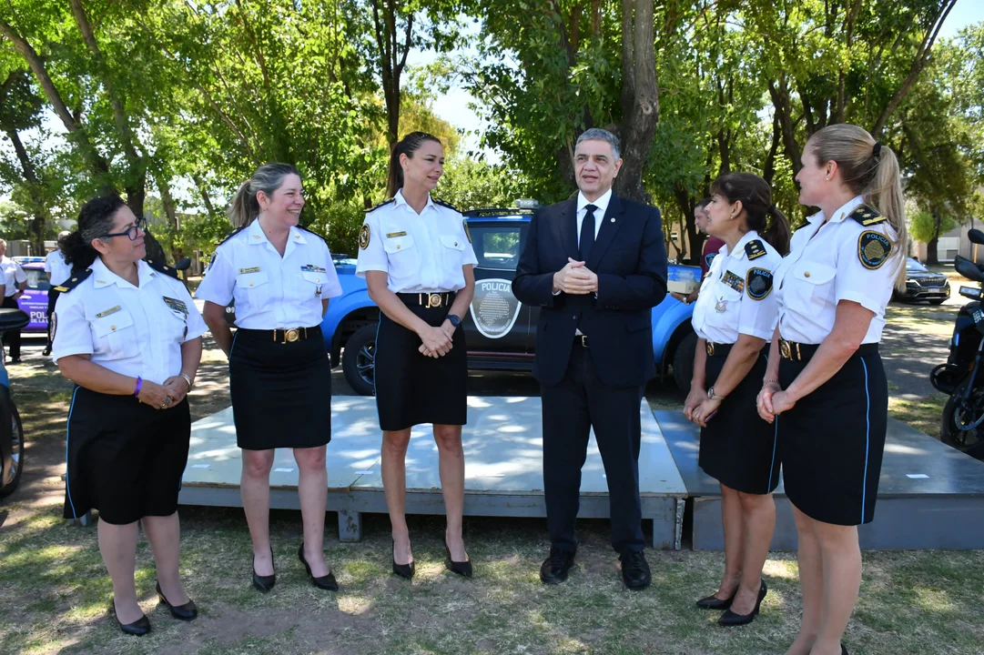 El Jefe de Gobierno porteño Jorge Macri presentó, junto al ministro de Seguridad, Waldo Wolff, presentó a la nueva plana mayor de la fuerza policial, que está integrada -por primera vez en la historia- por cinco mujeres en la cúpula.