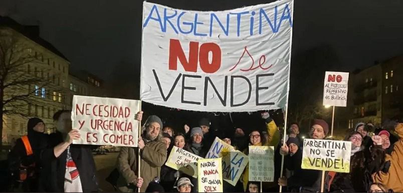 En Berlín, unas 100 personas se congregaron frente a la embajada argentina con carteles como «Argentina no se vende» o «La democracia está en peligro».