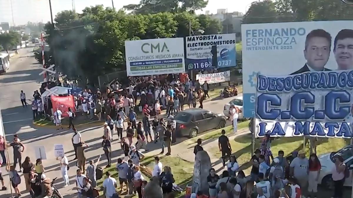 La multisectorial -conformada por organizaciones como la Federación de Tierra, Vivienda y Hábitat (FTV), la Corriente Clasista y Combativa (CCC), el Movimiento Barrios de Pie, el Frente Barrial de la CTA, el sindicato de Canillitas, la Corriente Martín Fierro y agrupaciones de jubilados y pensionados de la Matanza- convocaron a la protesta desde minutos antes de las 8, en la intersección de las vías del ferrocarril y la calle Germán Abdala, en la localidad de Isidro Casanova.